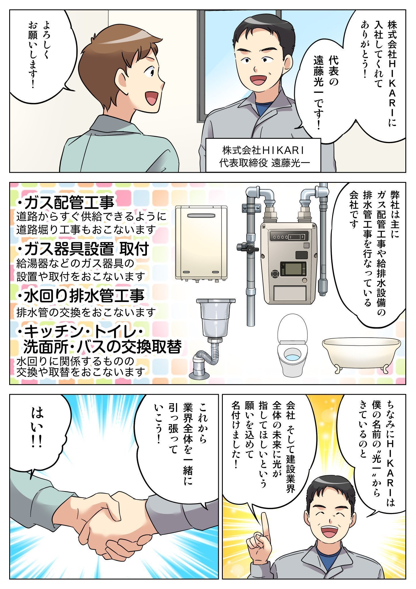 株式会社HIKARIの仕事内容をマンガで分かりやすくご紹介いたします。