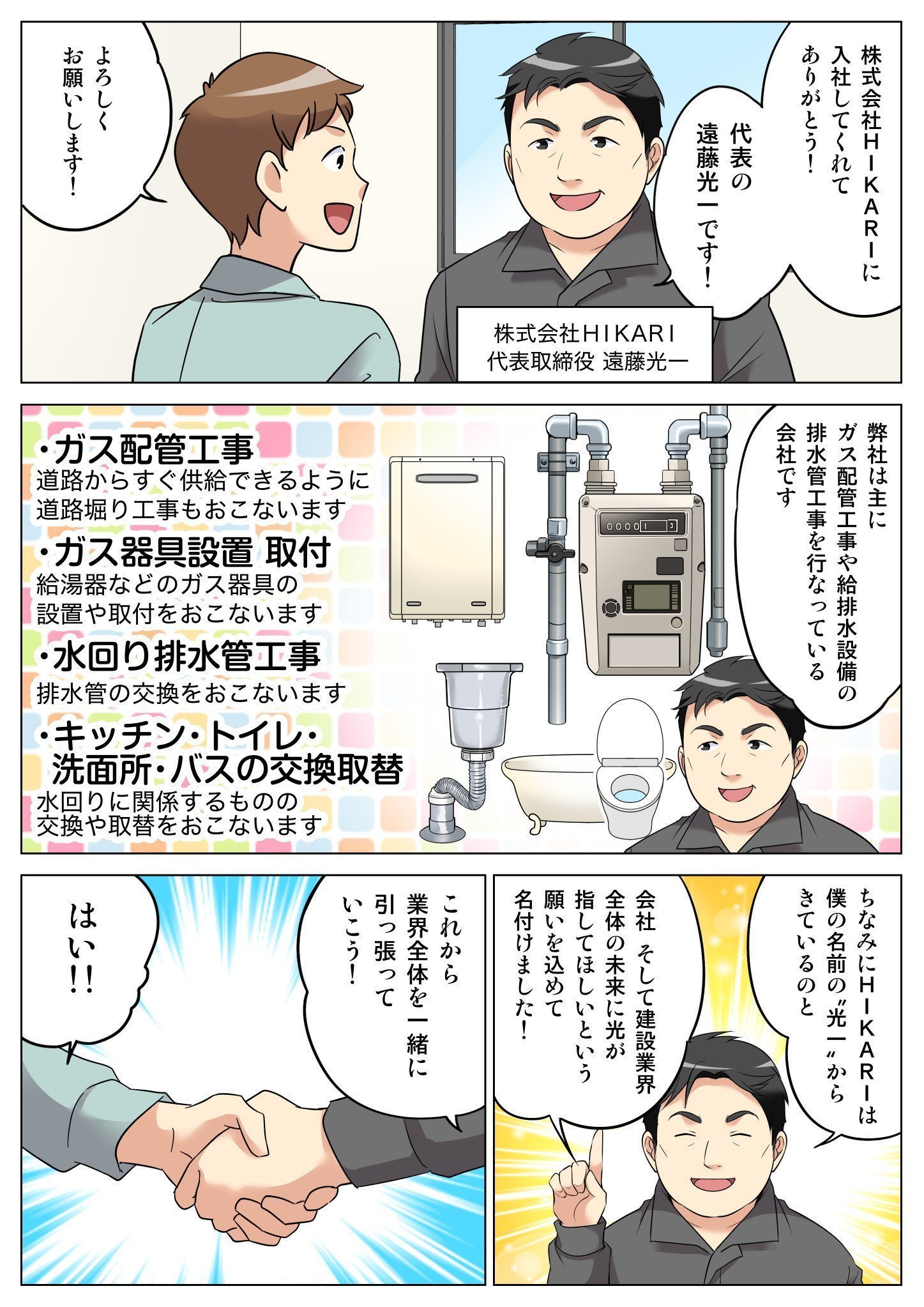 弊社では、ガス関連工事や給排水衛生設備工事を承っております。生活に欠かせないガスや水を、安全に使用できるようにするのが弊社の役目。詳しくは事業内容ページをご覧ください。