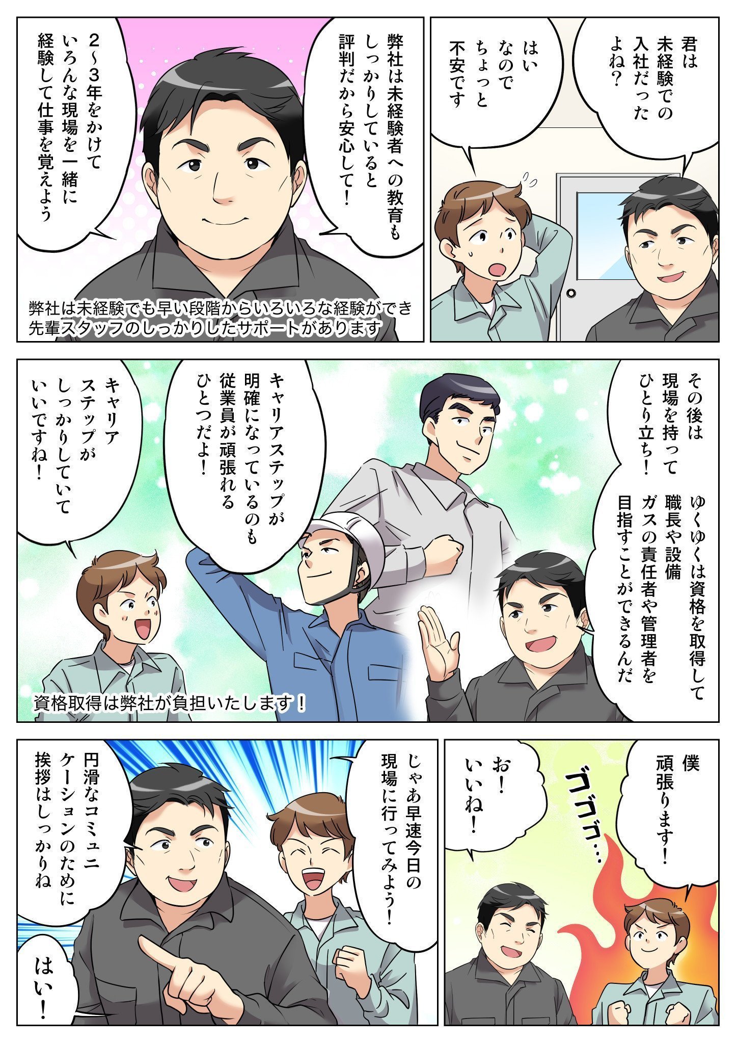 最終的には設備やガスの責任者・管理者を目指していただきます。プロとして人々の暮らしを支えていきましょう。