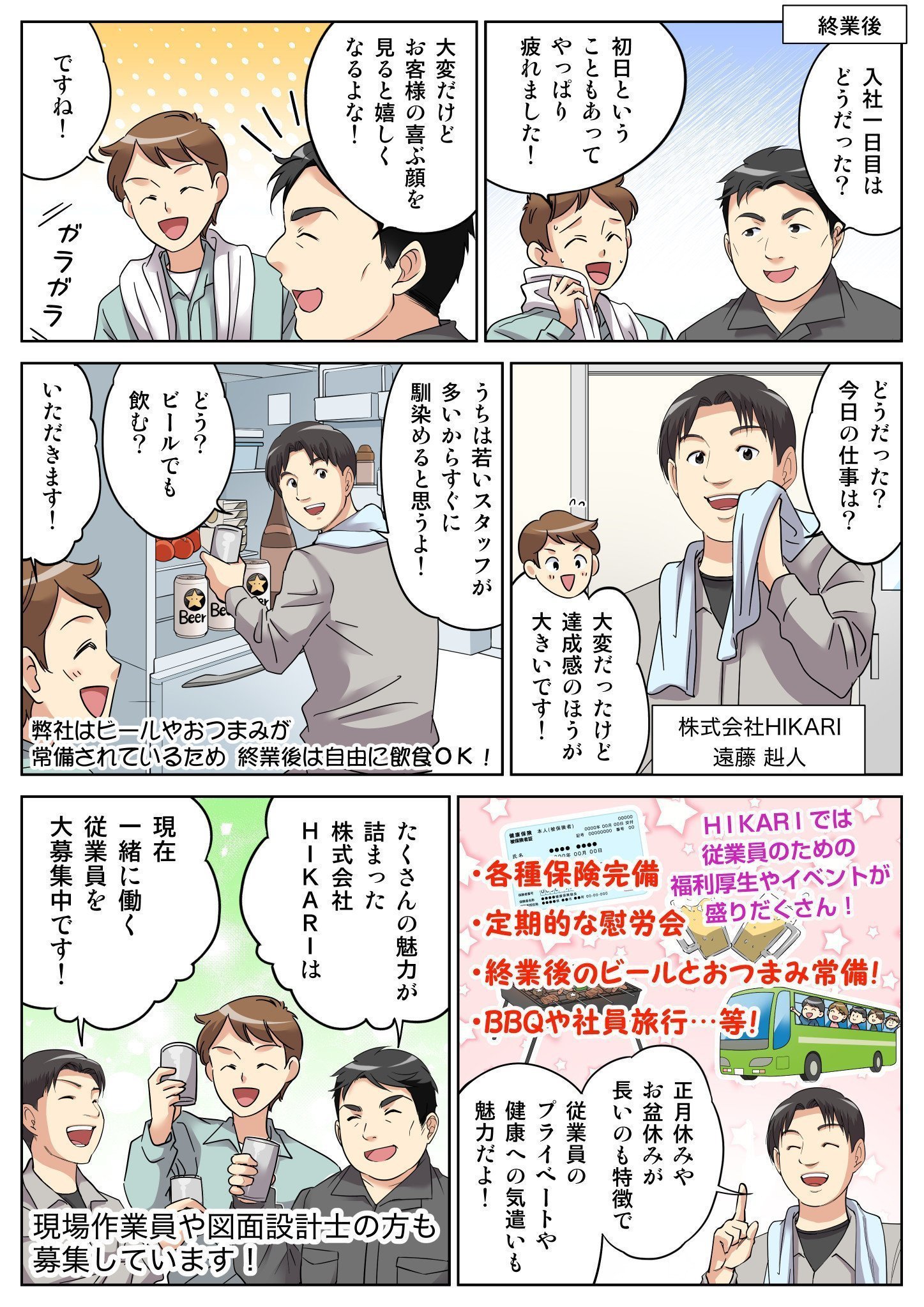 株式会社HIKARIには、未経験スタートのスタッフも多数在籍しております。幅広い現場で経験を積みながら、確実に成長していける職場です。弊社の仕事に興味のある方であれば、未経験者・経験者問わずお待ちしております。